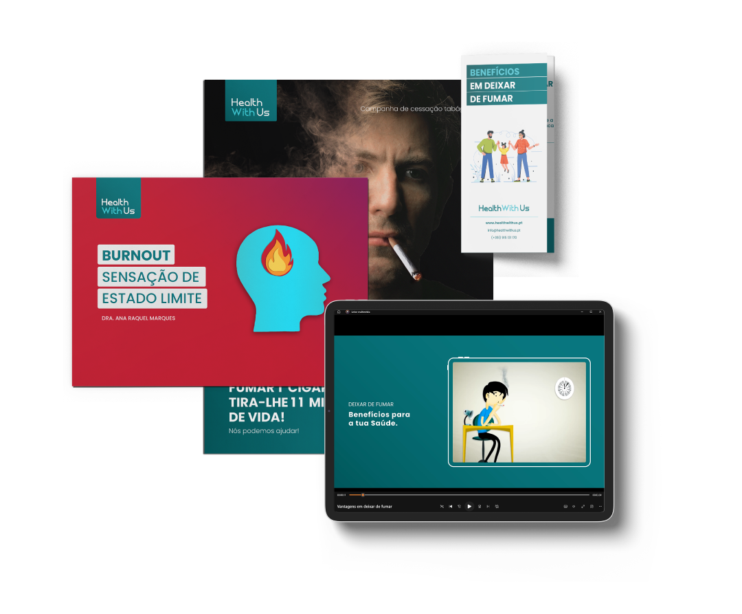 Todos os meses, campanhas temáticas com materiais educativos sobre alimentação, stress, tabagismo e muito mais.