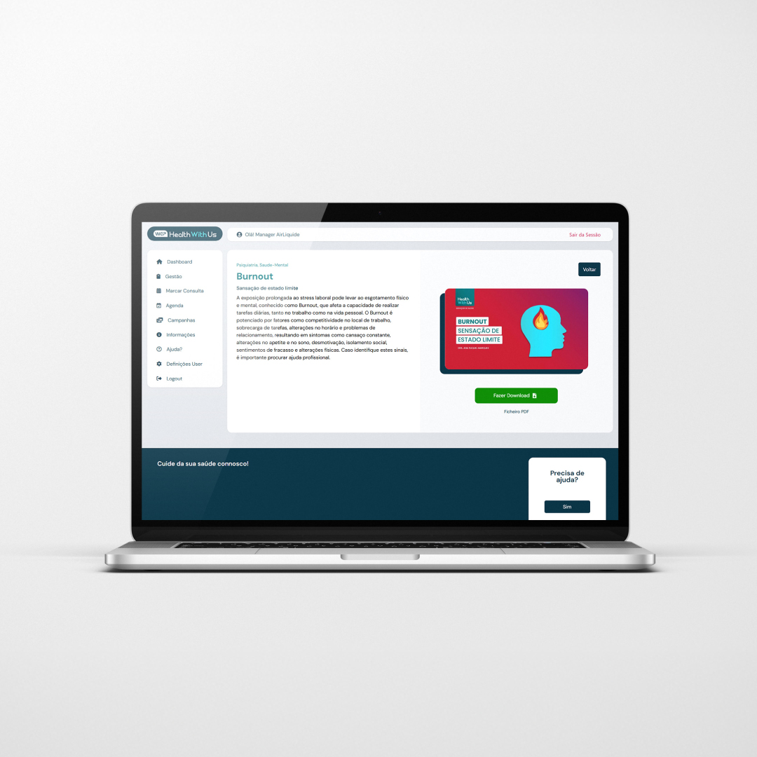 Na Health With Us desenvolvemos soluções inovadoras de saúde corporativa que conectam tecnologia, cuidado personalizado e gestão inteligente para transformar a experiência dos seus colaboradores e gerar impacto real nos resultados da sua empresa.